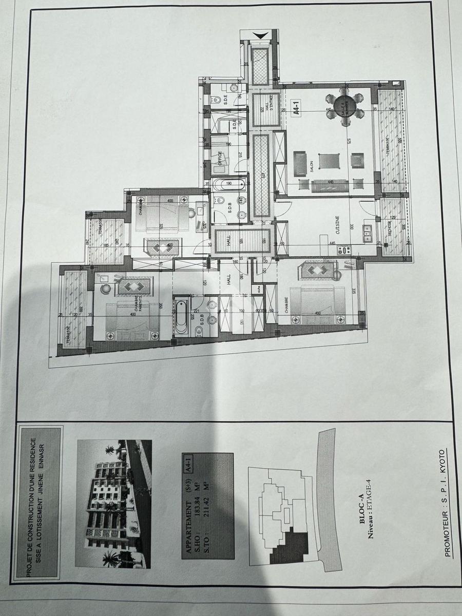 Situé au 4 étage d’une résidence de luxe dans un nouveau quartier prestigieux de Jardin d’Ennasr, cet appartement offre un cadre de vie exceptionnel.