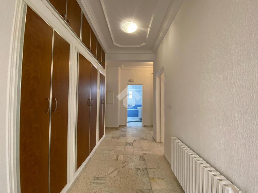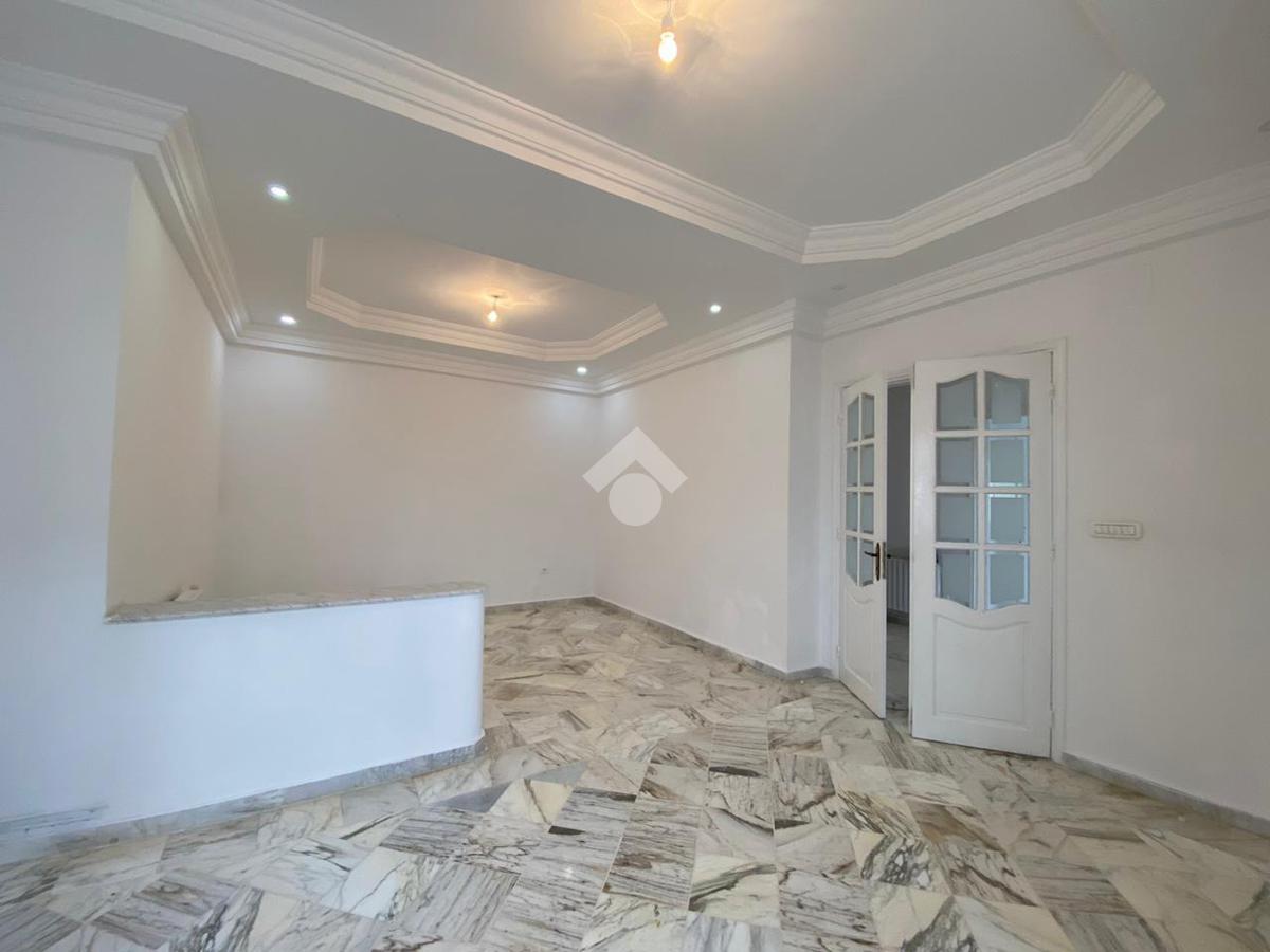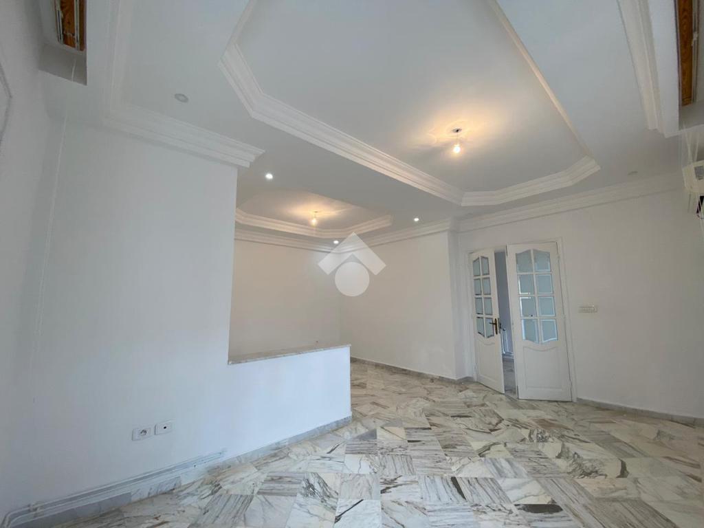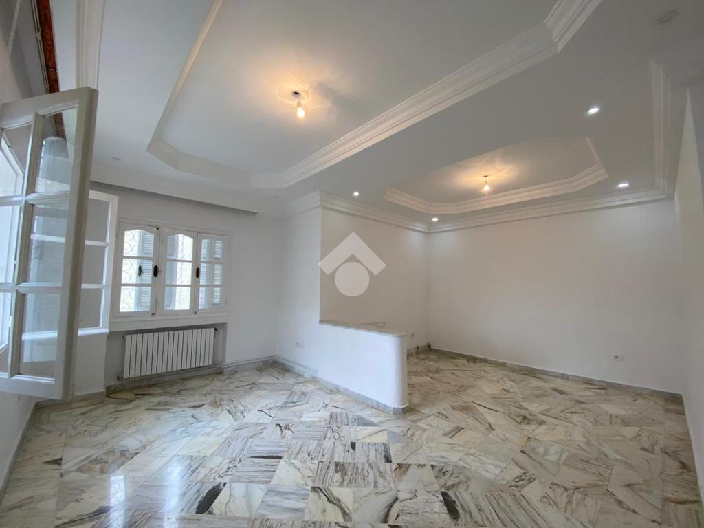 Dès l’entrée, vous découvrez un couloir avec un placard de rangement. Le salon, spacieux, permet d’aménager aisément un espace salon et une salle à manger, avec un revêtement en marbre blanc.